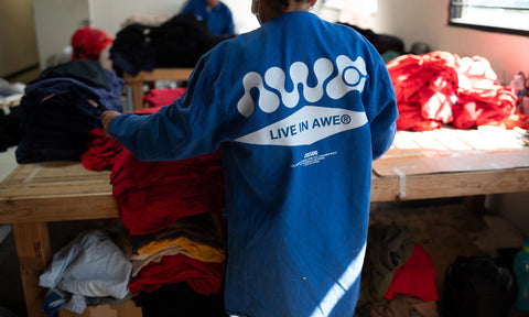 Everything you see is secondhand, each piece is sorted and graded in our LA warehouse. Because the world doesn't need another new T-shirt. It needs new ways of thinking. Live in AWE©.