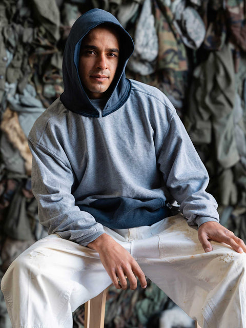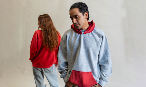 "Heather Grey Sweatshirts pair beautifully with the marquee components of our Faded Red Hoodies."
